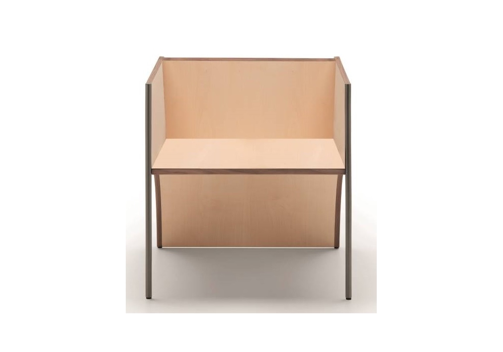 Ark firmata da David Lopez Quincoces per Living Divani è una poltrona con struttura composta da pannelli in multistrato di betulla curvati nella parte inferiore ed impiallacciati in diverse finiture. Gambe frontali in tondo trafilato in acciaio e verniciate con polveri epossidiche grigio canna di fucile o colore brunito con piedini in PVC intercambiabili. Rivestimento sfoderabile in differenti tessuti o pelli.