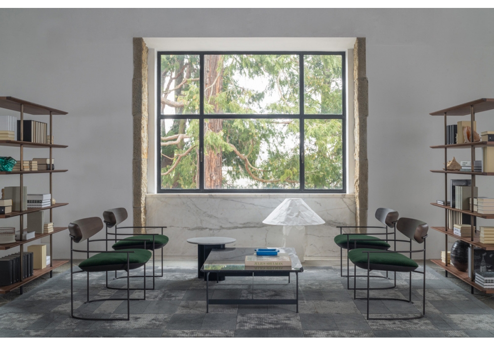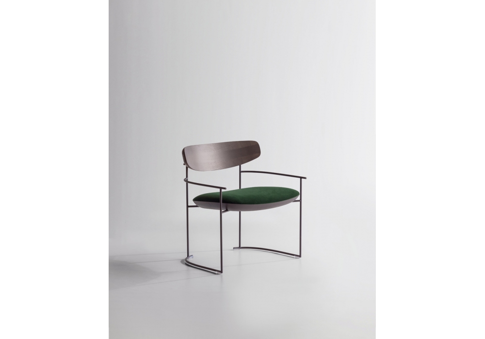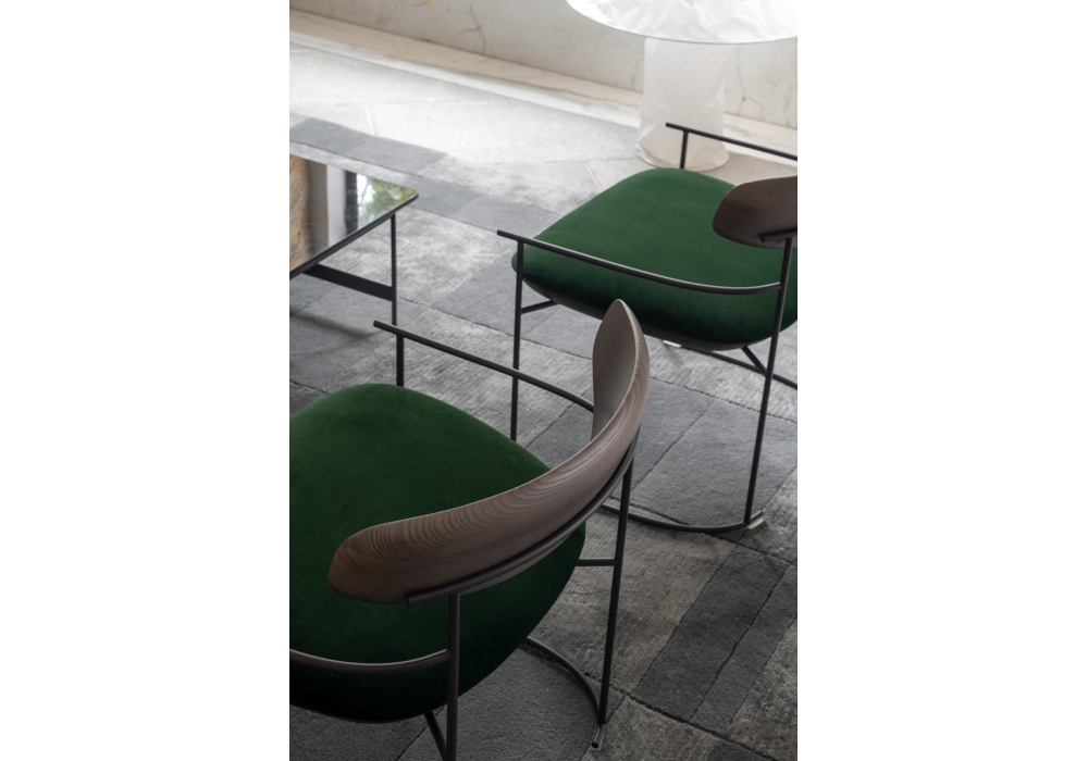 Keel Light firmata da M + V per Potocco è una poltrona con struttura in in tondino di metallo verniciato goffrato, schienale in massello di frassino e seduta imbottita in poliuretano espanso ignifugo con rivestimento in differenti pelli, tessuti o ecopelli.