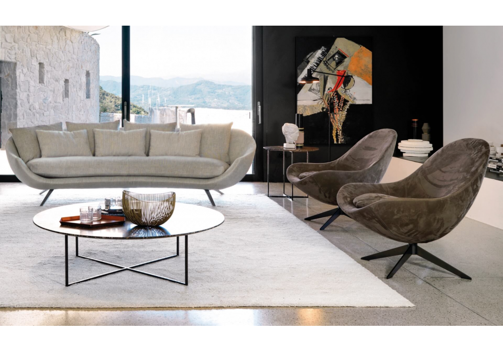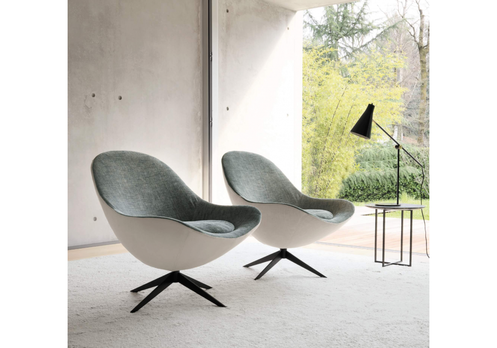 Soor firmata da Jai Jalan per Désirée è una poltrona con struttura in metallo annegato nel poliuretano schiumato a freddo e rivestita con tessuto protettivo accoppiato. Cuscino seduta in piuma, con inserto in poliuretano ed in fodera di tela antipiuma con rivestimento in tessuto o pelle sfoderabile. La base è girevole ed è realizzata in metallo in finitura bronzo opaco.