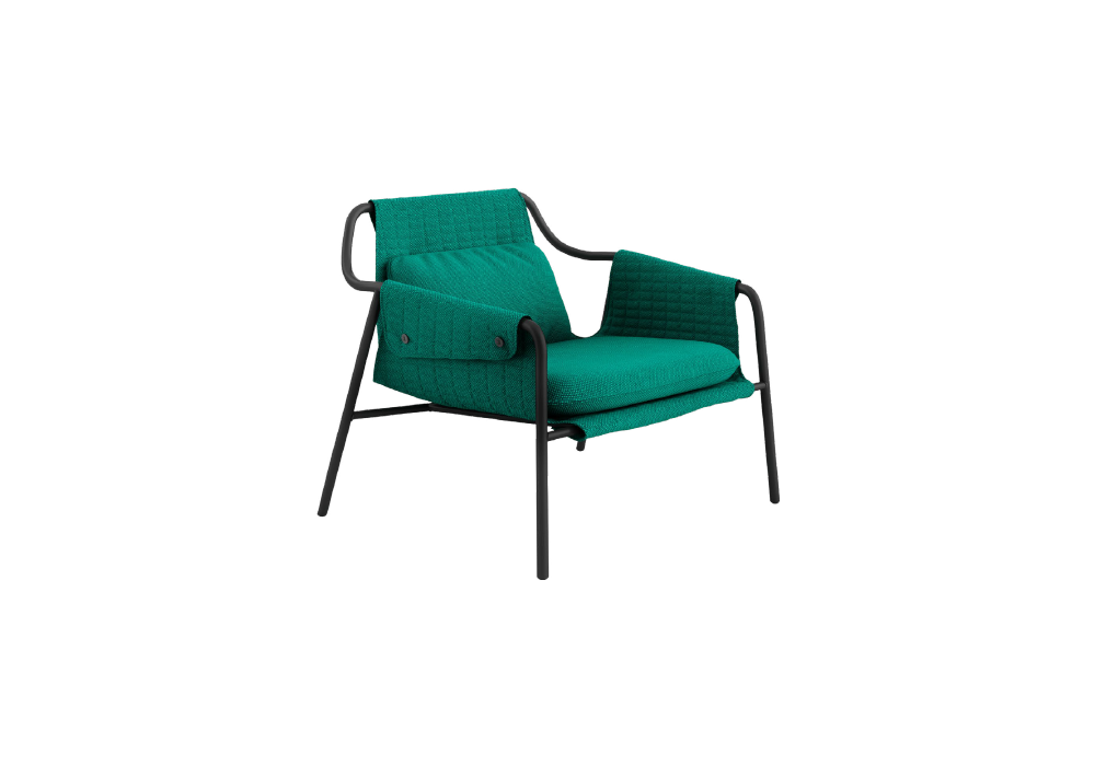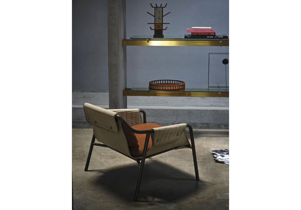 Jacket firmata da Patrick Norguet per Tacchini è una poltrona con struttura metallica rivestita da un tessuto trapuntato, che fa da scocca. Due cuscini completano la seduta (inclusi nel prezzo).