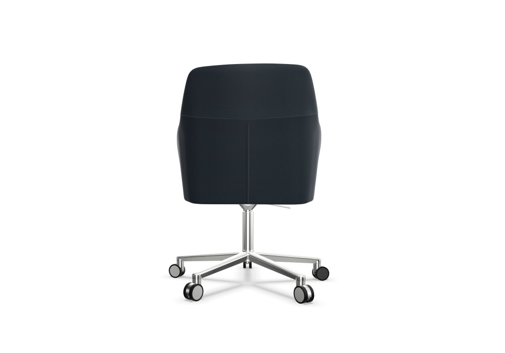 Alya firmata da Lievore Altherr Molina per Andreu World è una poltrona girevole con sedile e schienale imbottiti e base centrale in alluminio con 5 ruote con regolazione pneumatica dell'altezza. Disponibile in alluminio lucido, bianco o nero. Rivestimento in differenti tessuti, pelli o simil pelli.