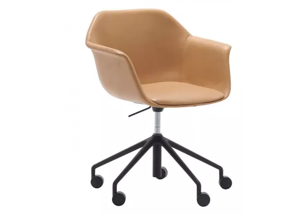Gala firmata da Piergiorgio Cazzaniga per Andreu World è una poltrona con base in alluminio in differenti finiture. Rivestimento in tessuto, pelle o simil pelle. Disponibile nella versione con o senza ruote.