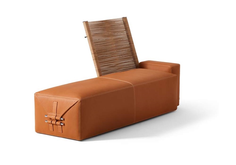 Somewhere El-S firmato da Philippe Starck per Cassina è un daybed con o senza schienale intrecciato in cuoio naturale, seduta in tessuto Bogolan oppure in pelle Voyage. I braccioli sono sempre in pelle Voyage con profilo nella stessa finitura.