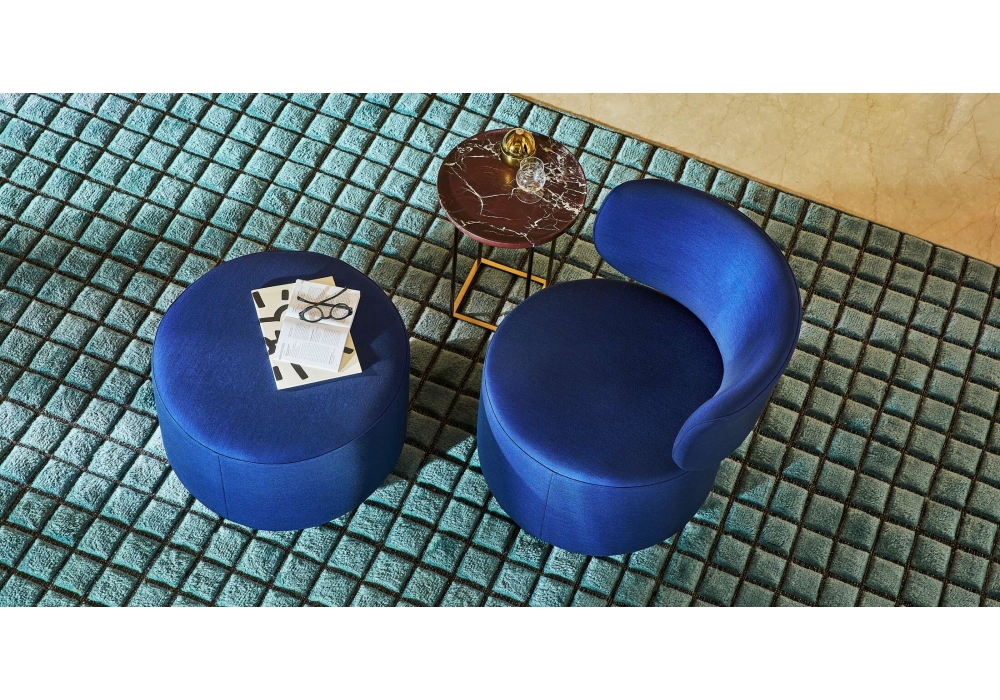 Tamburound firmata da Barber Osgerby per Cassina è una poltrona con staffa in alluminio, seduta e schienale girevoli con movimento indipendente e rivestimento in tessuto o in pelle. Disponibile anche con staffa in alluminio rivestita in tessuto.