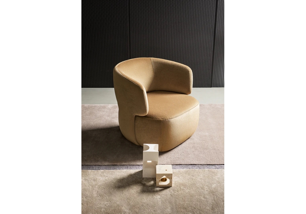 Doge firmata da Mauro Lipparini per Bonaldo è una poltrona con struttura in metallo, base girevole in metallo con meccanismo di ritorno automatico o piedini fissi, seduta in legno con cinghie elastiche, imbottitura in poliuretano espanso sagomato, rivestimento in tessuto o pelle.