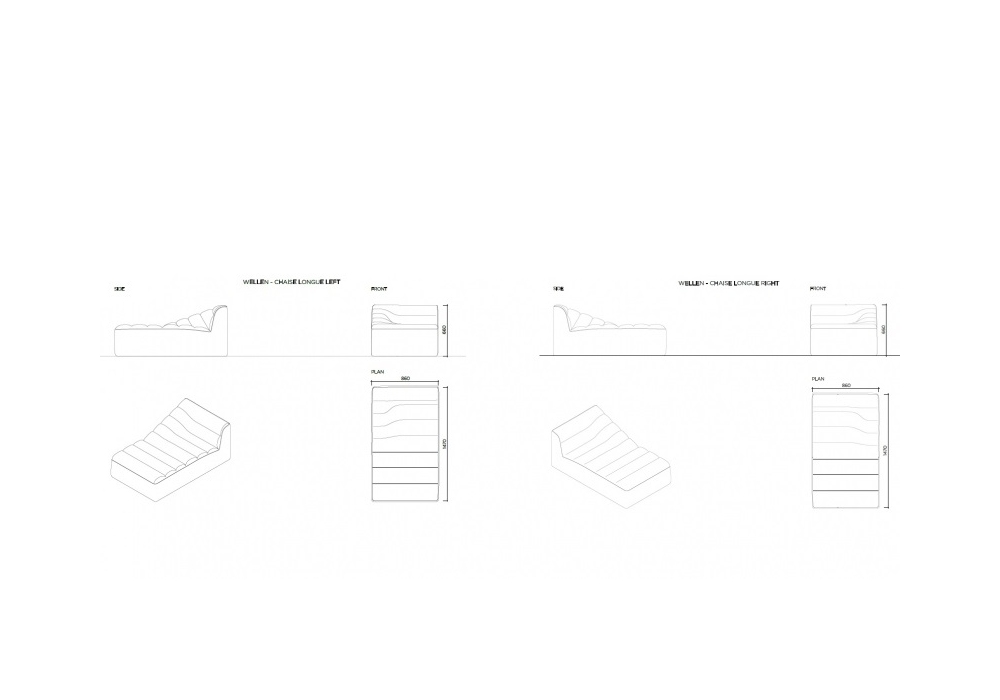 Wellen, firmata da Toan Nguyen per Karl Lagerfeld Maison, è una chaise longue con struttura interna in legno e rivestimento non sfoderabile disponibile in diversi tessuti.