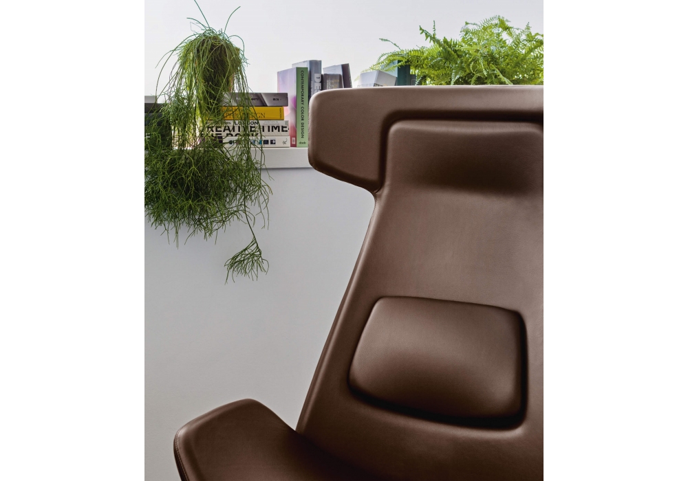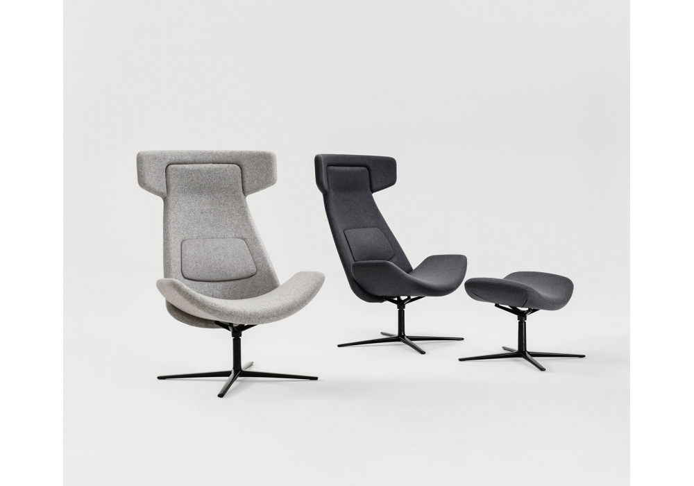 Nordic firmata da Giovanni Ingignoli per Milani è una poltrona lounge realizzata con struttura in schiumato ignifugo, supporto girevole in alluminio. Rivestimento in tessuto o in pelle. Disponibile con o senza pouf.