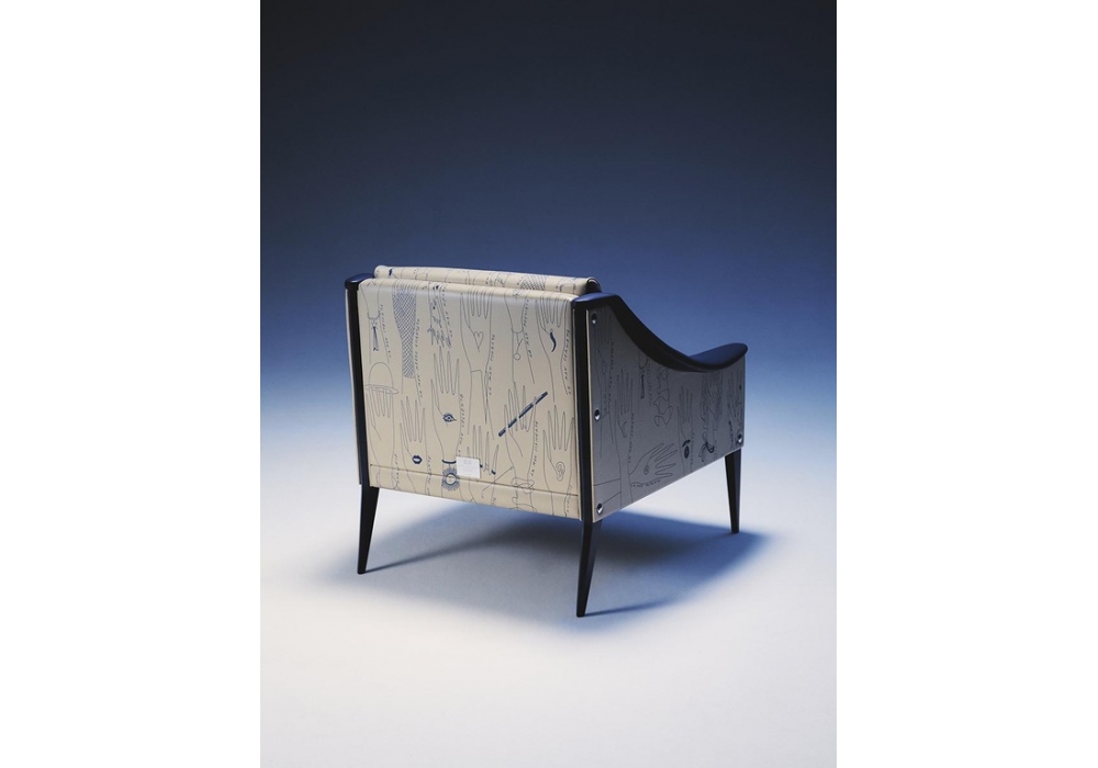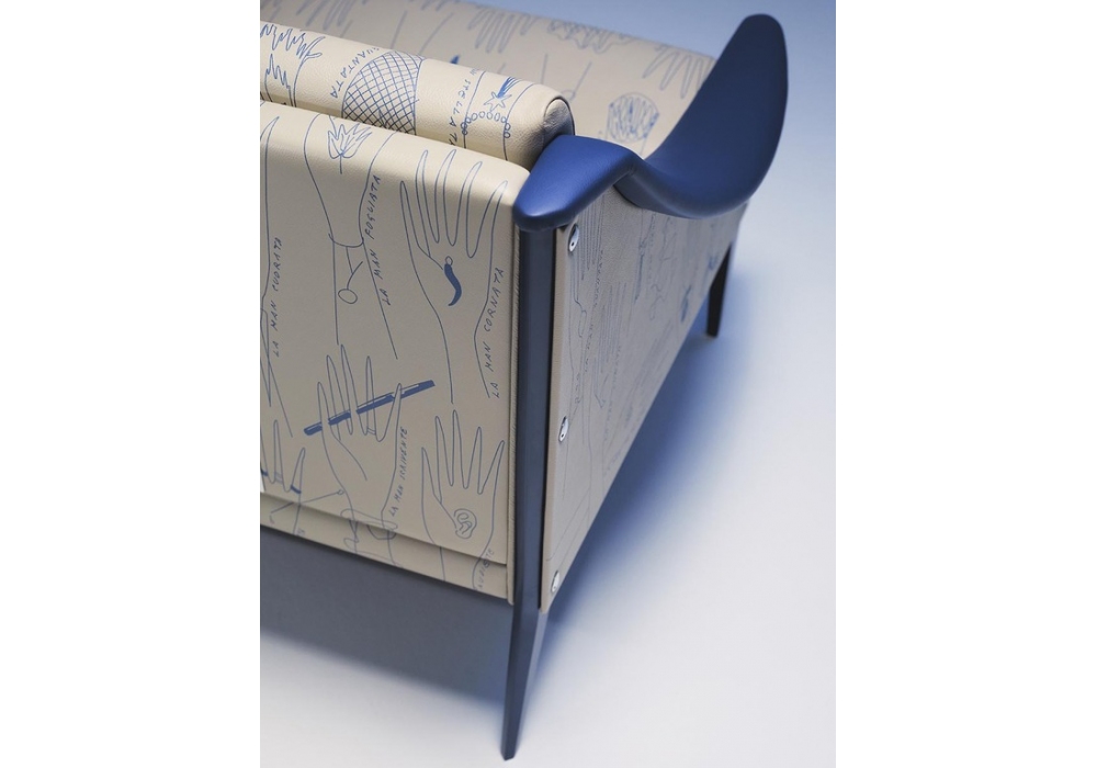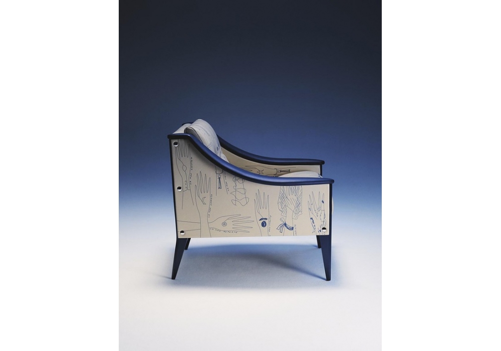 Dezza 60th Anniversary Limited Edition firmata da Poltrona Frau è una poltrona imbottita dal design modernista, elegante ed essenziale. La struttura in legno massello è rivestita in Pelle Frau® Impact Less nei colori Panna e Iris, decorata con un’illustrazione inedita di Gio Ponti raffigurante 26 mani stilizzate, ognuna con un nome e una caratteristica unica. Ogni esemplare è numerato, dotato di certificato di autenticità e contrassegnato da una targhetta in metallo sul retro. Edizione limitata 60 pezzi.