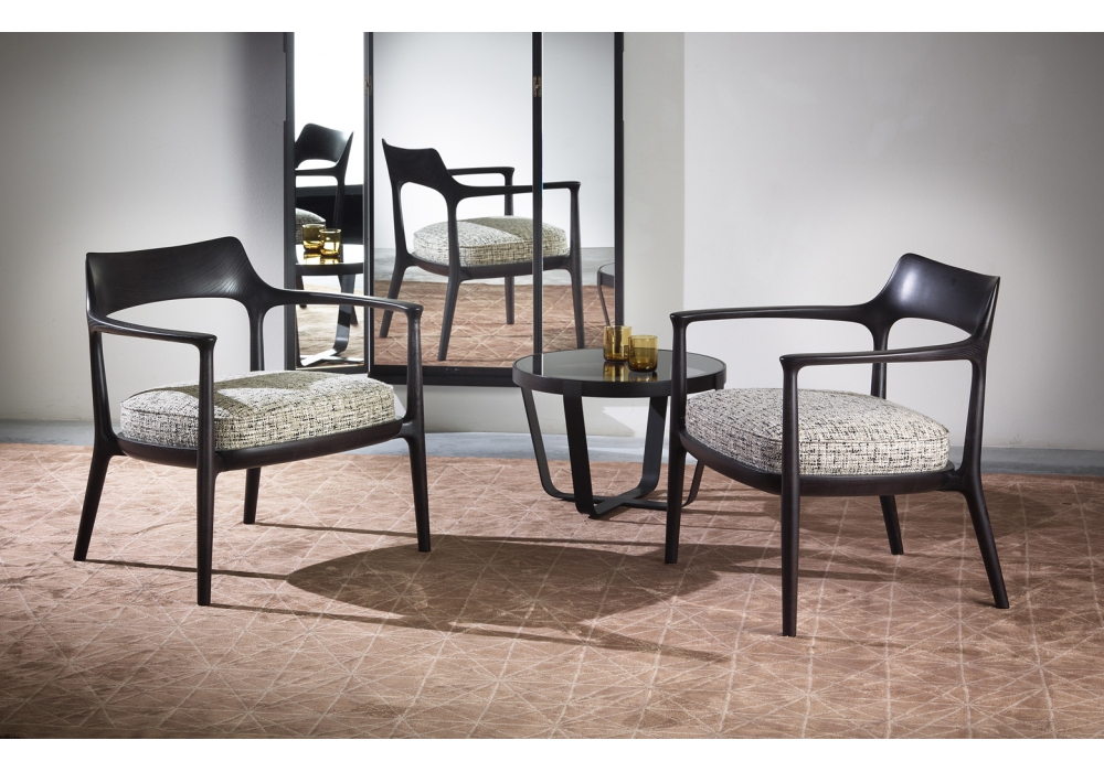 Janine Lounge firmata da Roberto Lazzeroni per Ceccotti Collezioni è una poltrona lounge con struttura in legno massello di noce o frassino e seduta imbottita e rivestita in tessuto o pelle.