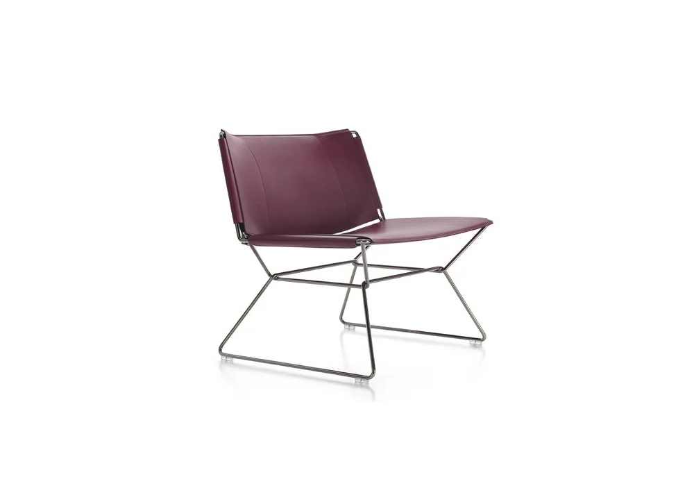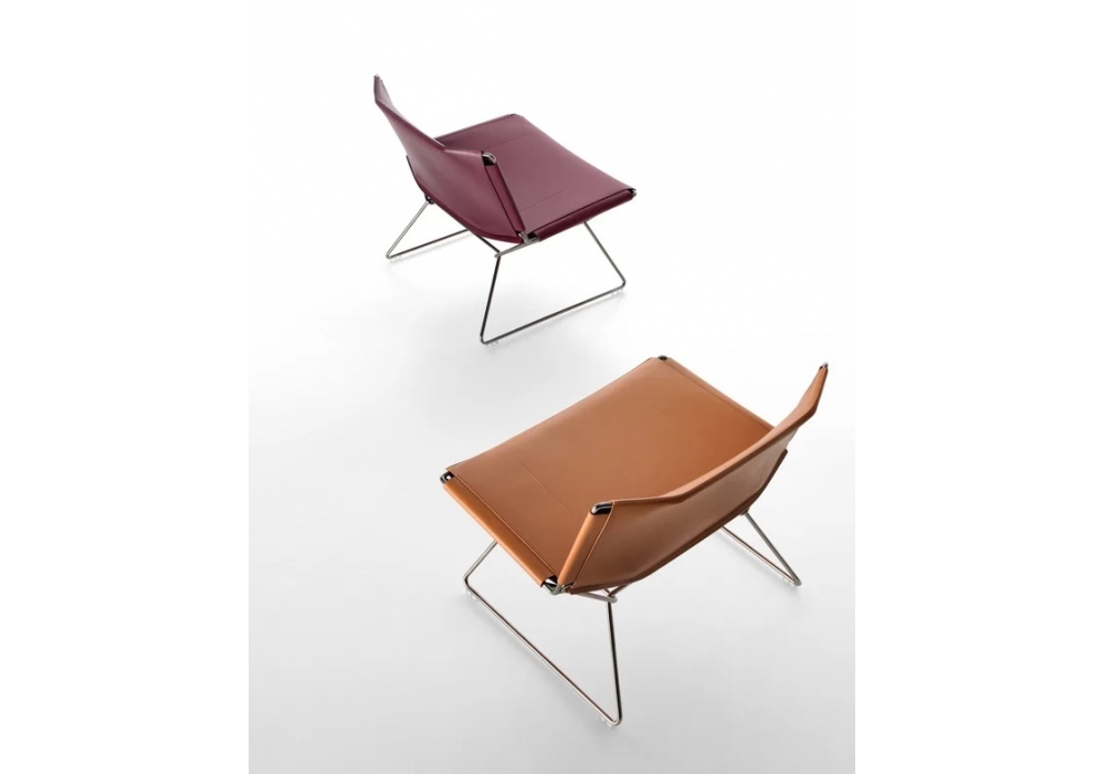 Neil Leather firmata da Jean Marie Massaud per MDF Italia è una poltrona con struttura cromata nera e rivestimento in differenti finiture di cuoio.