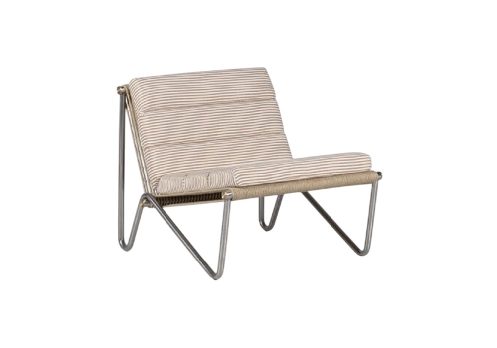 Dabliou Open-Air firmata da Studiopepe per Baxter è una poltrona con struttura in acciaio inox 316 lucido o acciaio inox 316 verniciato a polvere. Seduta e schienale con intreccio in paper cord colore naturale. Imbottitura in poliuretano espanso a densità differenziata. Dettagli in acciaio inox 316 lucido o in ottone satinato.