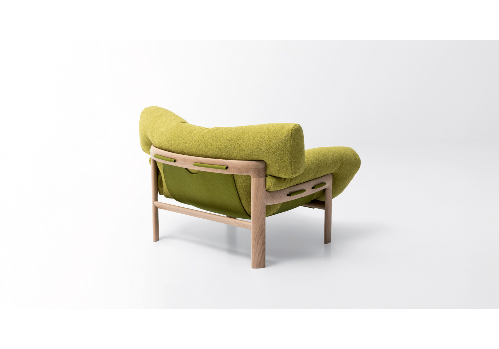 Légère firmata da Angelo Mangiarotti e Chiara Pampo per Paola Lenti è una poltrona con struttura in massello di rovere tinto con puntali in materiale plastico e feltro. Rivestimento in tessuto sfoderabile in varie finiture.
