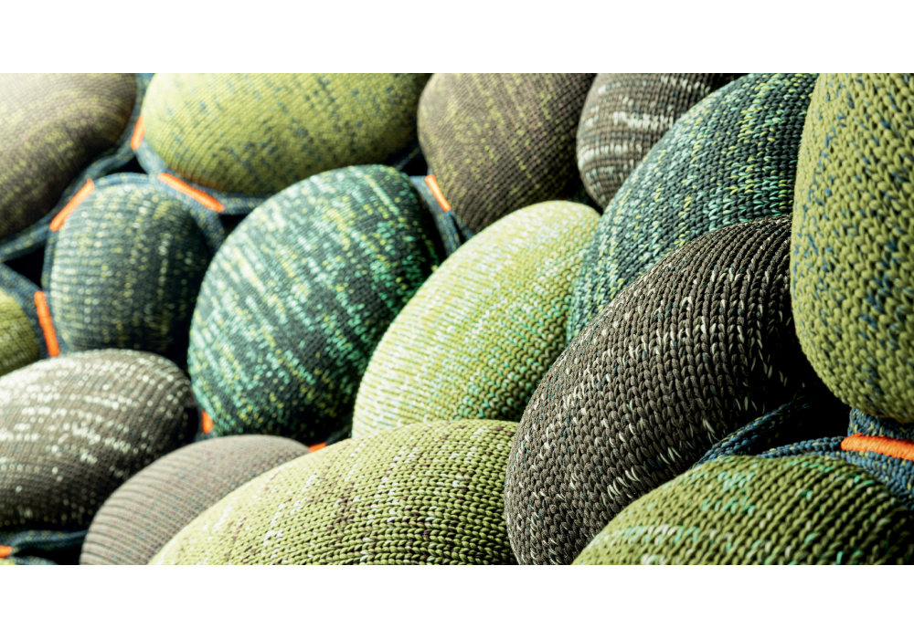 Miriade firmata da Estúdio Campana per Paola Lenti è una poltrona con materassino rivestito in maglia rasata composto da elementi bordati ed uniti agli altri fino a formare una seduta unica e diversa. La struttura è in acciaio inox AISI 316 verniciato opaco.