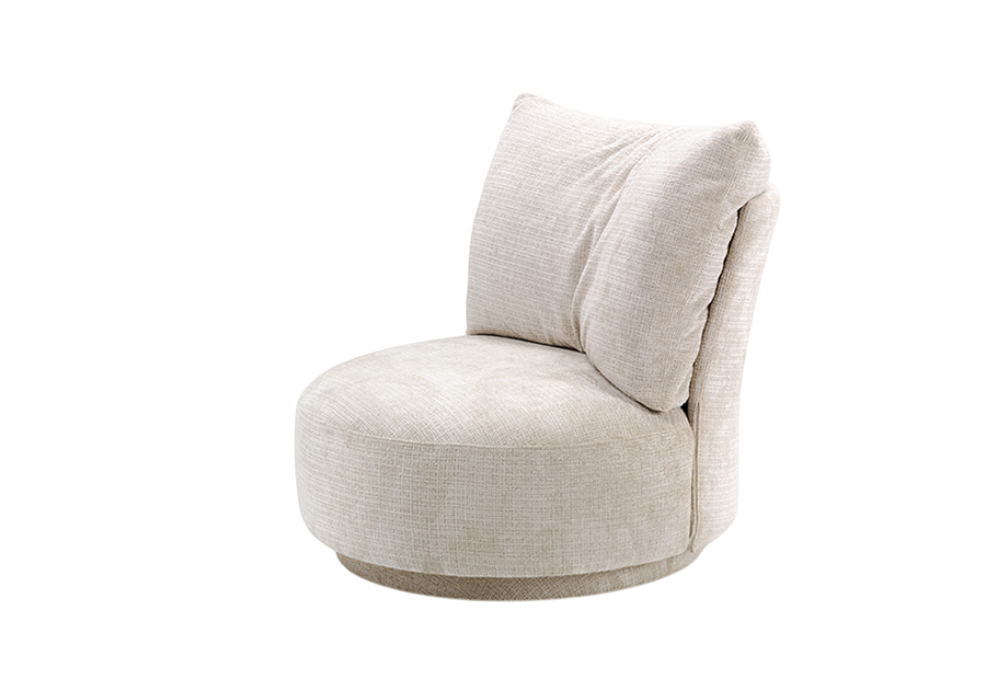 Durante firmata da Angelettiruzza per Alivar è una poltrona con base fissa o girevole a 360°. Il rivestimento è in tessuto in varie finiture.