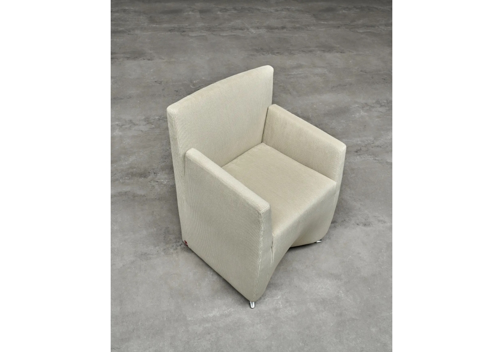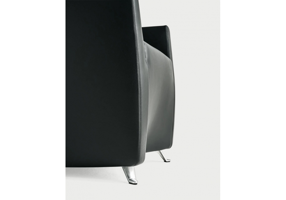 Caprichair firmata da Hannes Wettstein per Baleri Italia è una poltrona con schienale reclinabile, struttura interna in acciaio e imbottitura in poliuretano flessibile schiumato a freddo. Due piedini di appoggio anteriori in pressofusione in alluminio satinato. Tre ruote piroettanti posteriori in gomma rivestite in poliuretano. Disponibile in tessuto o pelle.