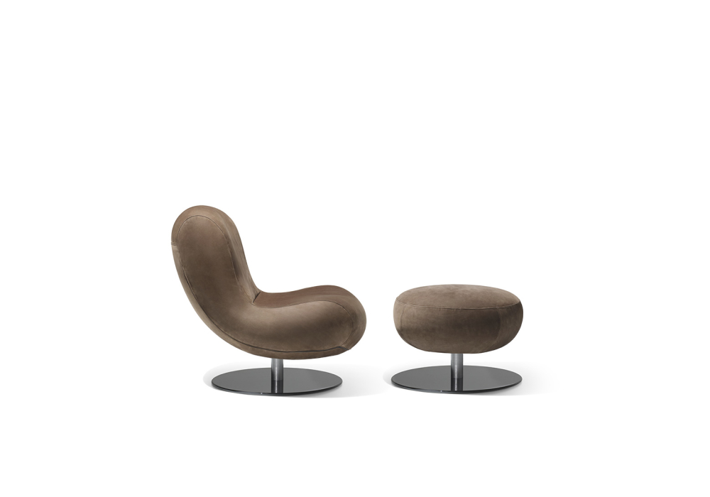 Bosco firmata da Naoto Fukasawa per Molteni&C è una poltrona, ispirata alle forme morbide del paesaggio toscano. I volumi generosi e l’imbottitura a densità variabile garantiscono comfort ed ergonomia, mentre il rivestimento continuo enfatizza la sensazione di accoglienza. Le cuciture leggere seguono il profilo curvo senza interromperne la superficie. Completa di base girevole in metallo con colonna centrale, offre libertà di movimento ed è disponibile con poggiapiedi coordinato per un relax ancora più completo.
