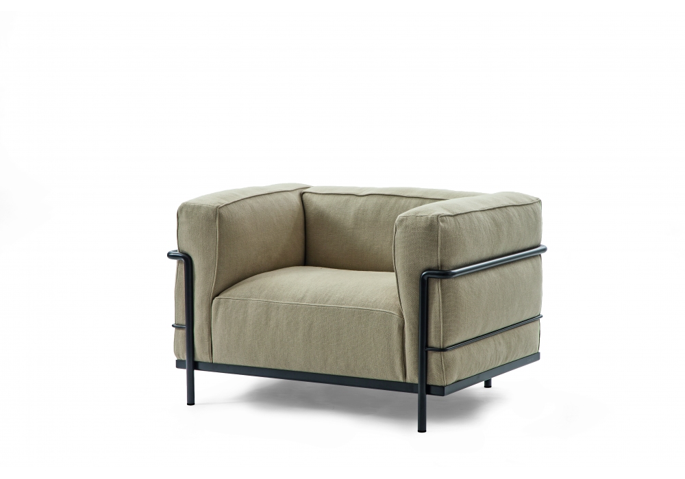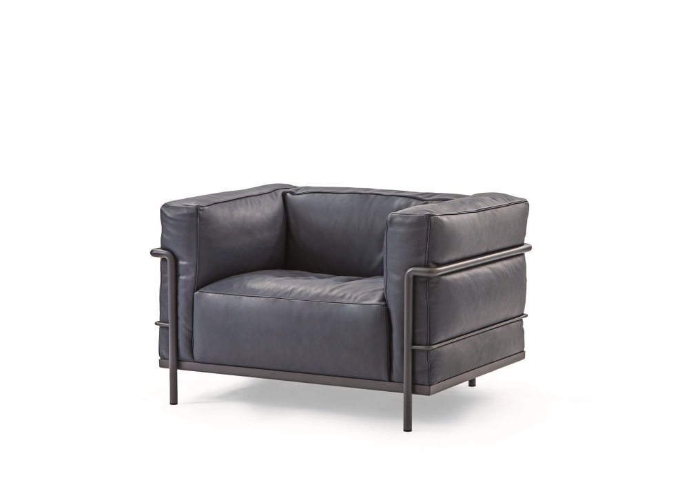 3 Fauteuil Grand Confort, Grand Modèle firmata da Le Corbusier, Pierre Jeanneret, Charlotte Perriand per Cassina è una poltrona realizzata con struttura cromata o verniciata e cuscini imbottiti con rivestimento in tessuto o in pelle.