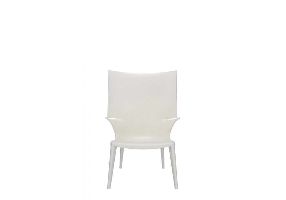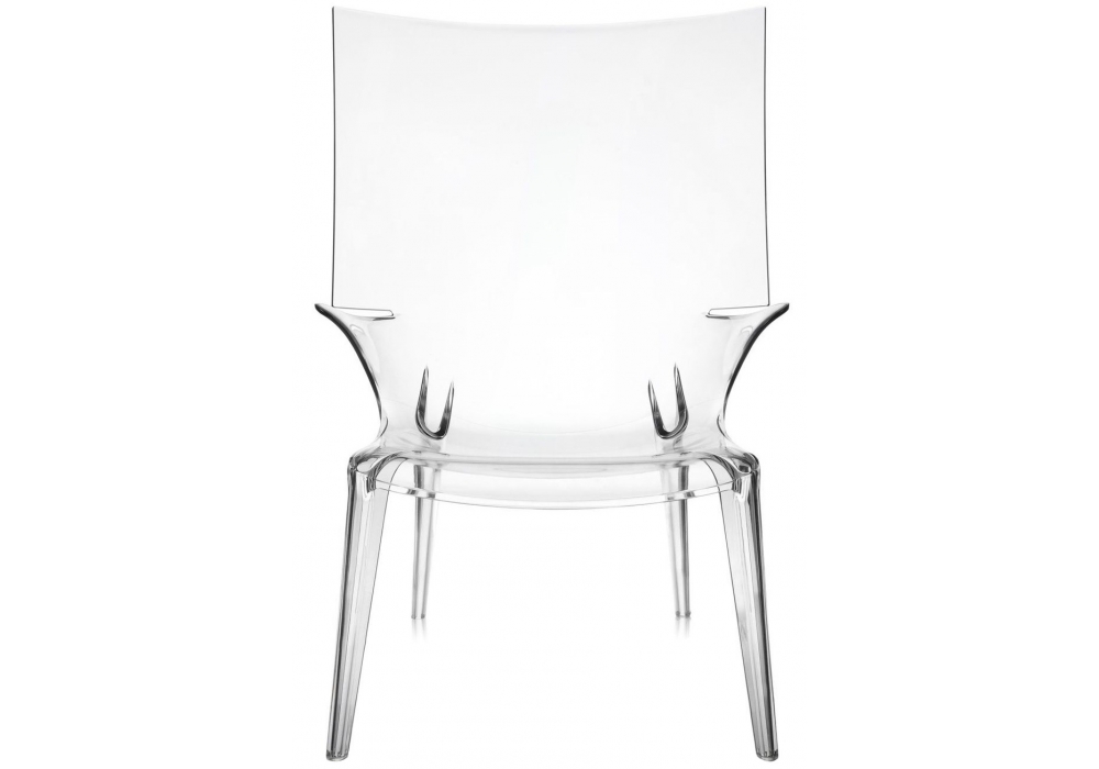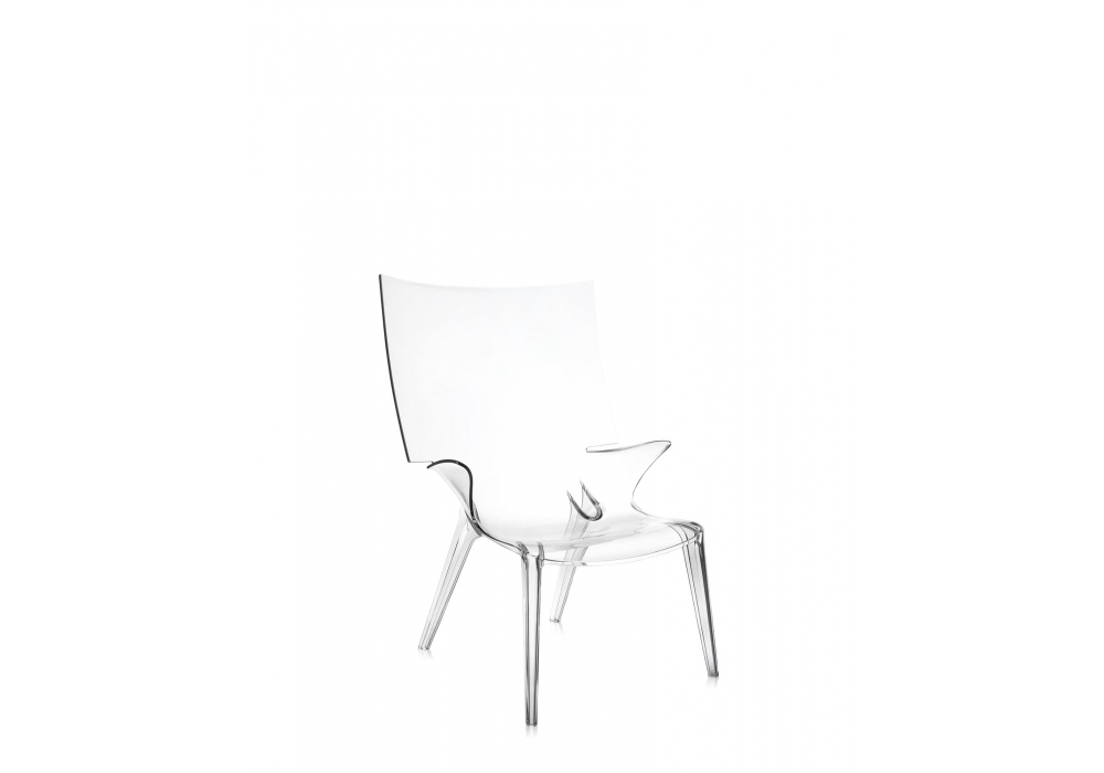 Uncle Jim firmata da Philippe Starck per Kartell è una poltrona in policarbonato trasparente o colorato in massa e trattamento effetto soft touch.