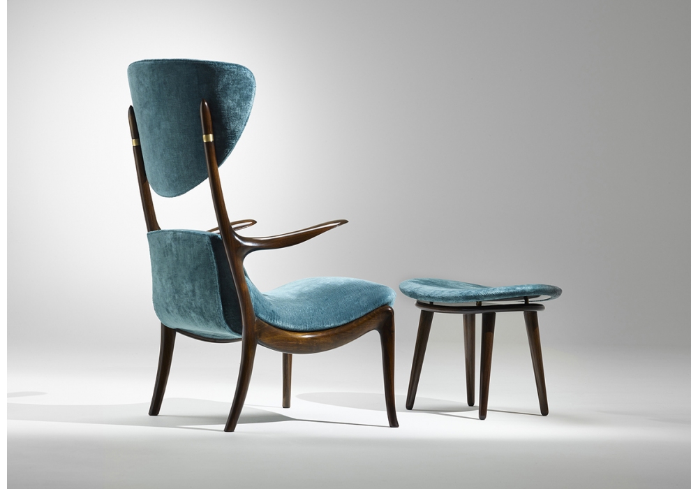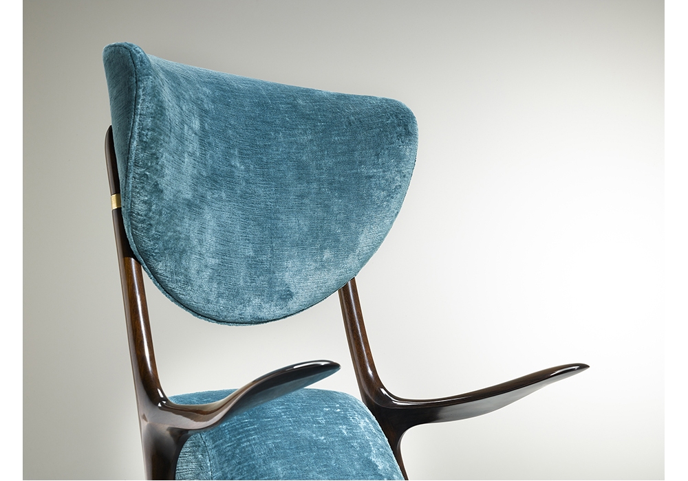 Star Trek di Ceccotti Collezioni è una poltrona realizzata in legno massello di noce americano, seduta e poggiatesta in multistrato curvato, imbottito e rivestito.