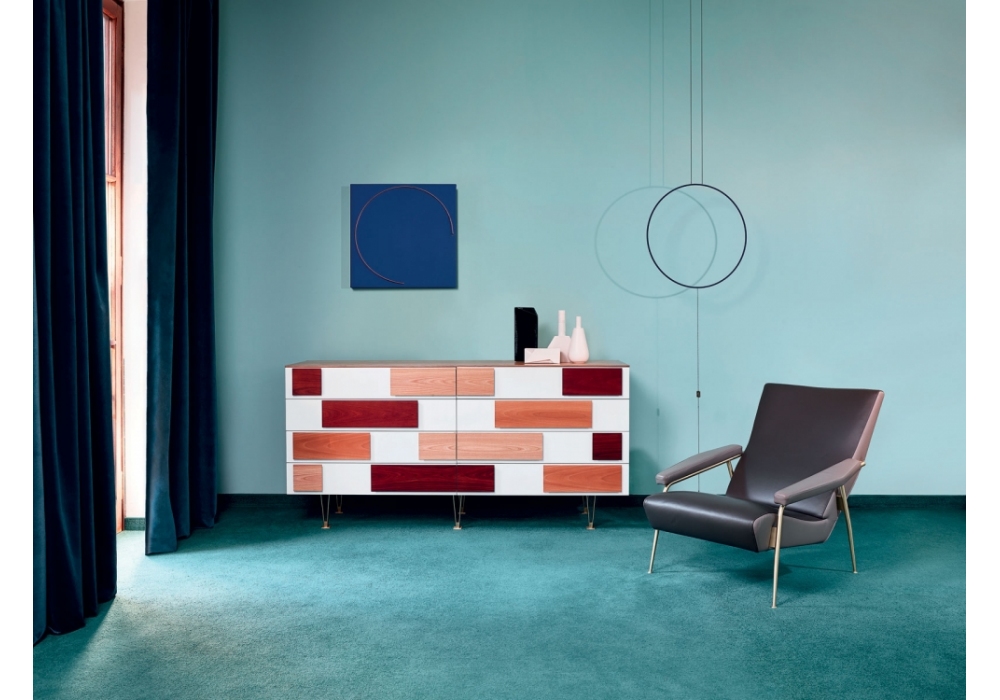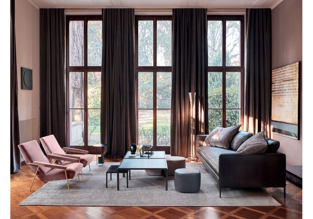 D.153.1 firmata da Gio Ponti per Molteni&C è una poltrona realizzata con struttura in ottone satinato e rivestimento in pelle, in tessuto, bicolore o punteggiato.