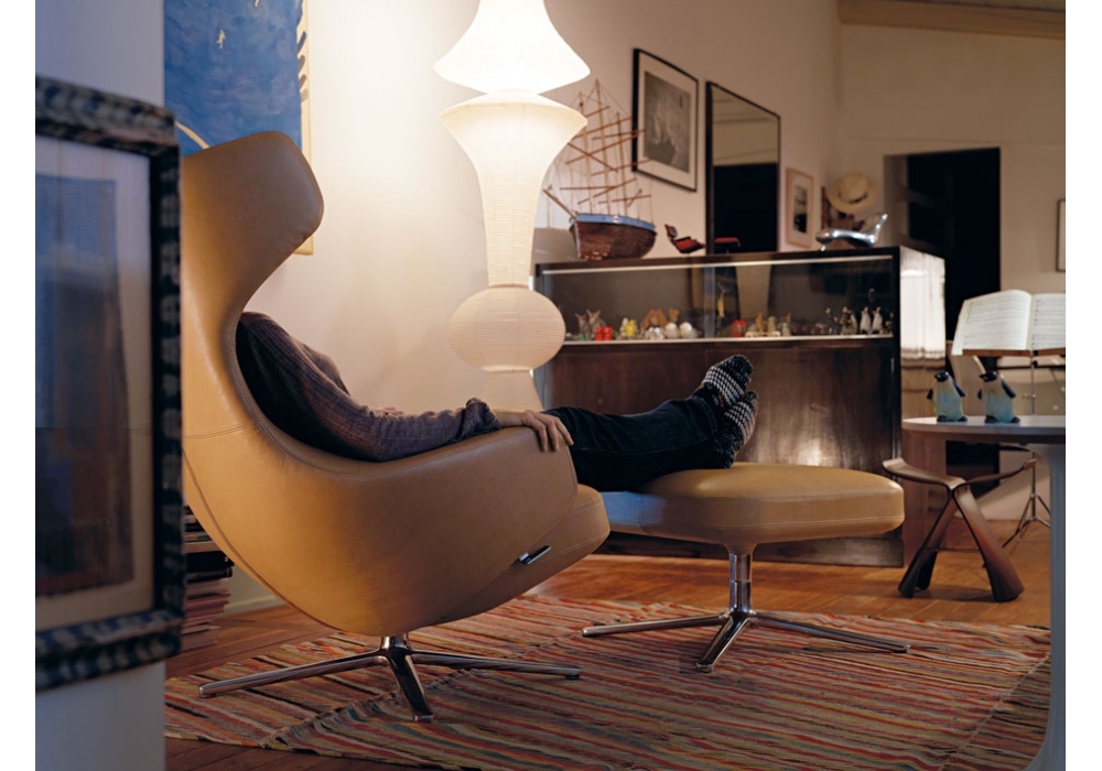 La poltrona a orecchioni Grand Repos è disponibile in tessuto o pelle. Il caratteristico poggiatesta invita ad appoggiare comodamente la schiena e trasmette una sensazione di comfort. Le cuciture decorative conferiscono alla poltrona, dall‘accento chiaramente contemporaneo, un tocco quasi artigianale.