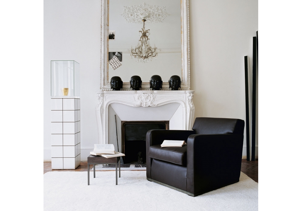 Imprimatur firmata da Antonio Citterio per Maxalto è una poltrona con bordo inferiore in acciaio verniciato nickel bronzato. Rivestimento disponibile in tessuto o pelle.
