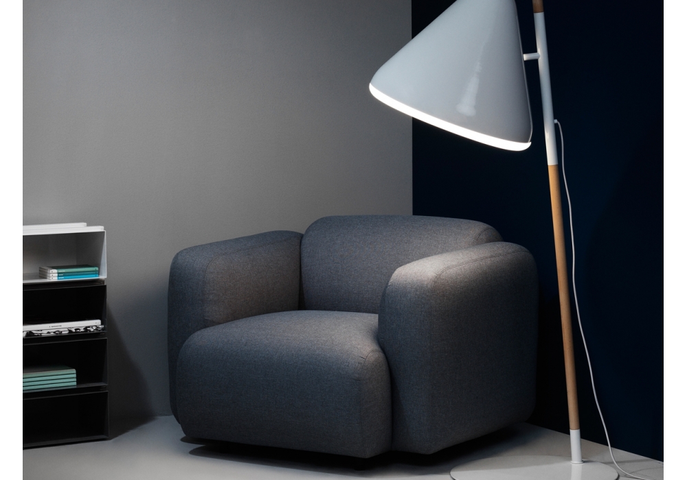 Swell, firmata da Jonas Wagell per Normann Copenhagen è una poltrona, con struttura in legno e schiuma HR rivestiti in differenti tipi di tessuto. Le gambe sono in legno di frassino verniciato e laccato.