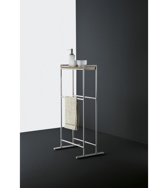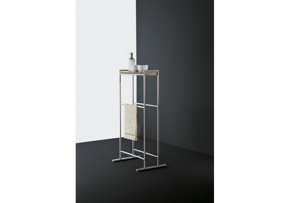 Minimal firmata da Giulio Gianturco per Boffi è una piantana porta asciugamani a parete in acciaio inox AISI 304 nella finitura satinata. Disponibile in due modelli.