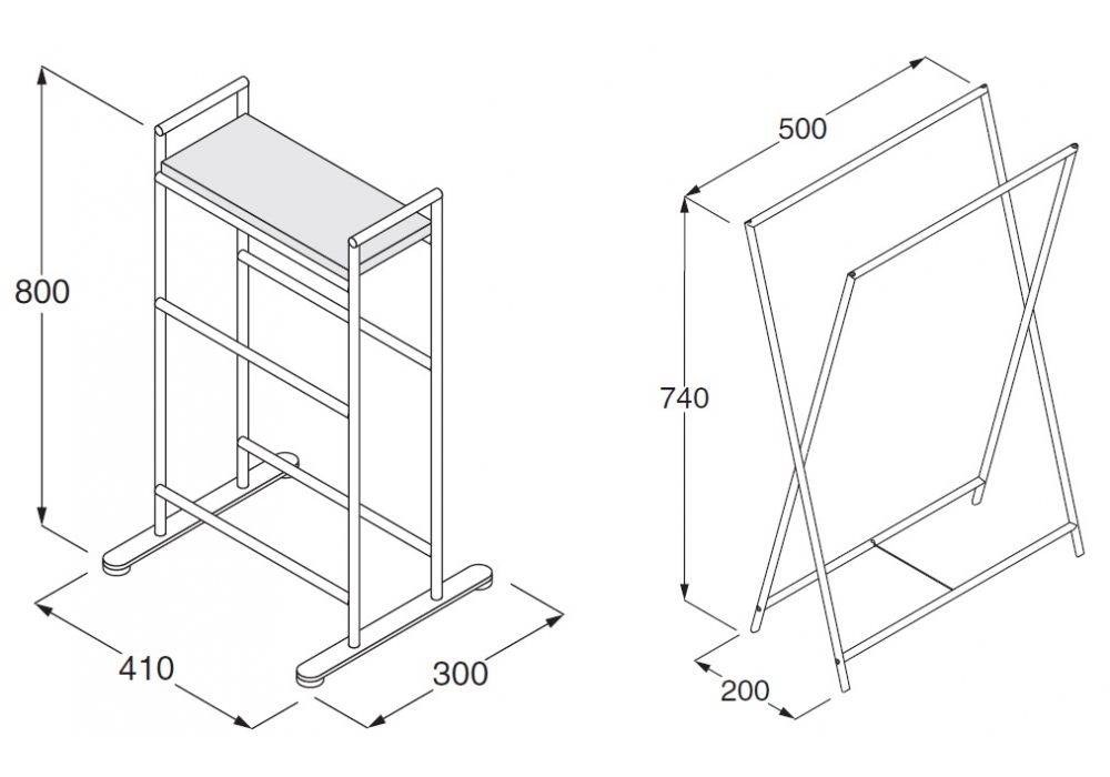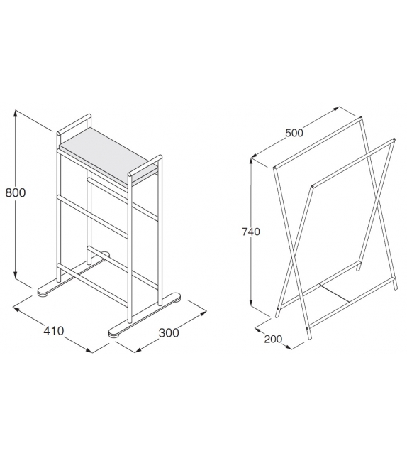 | Dimensioni | 50 x 20 x H 74 cm; 30 x 41 x H 80 cm. |