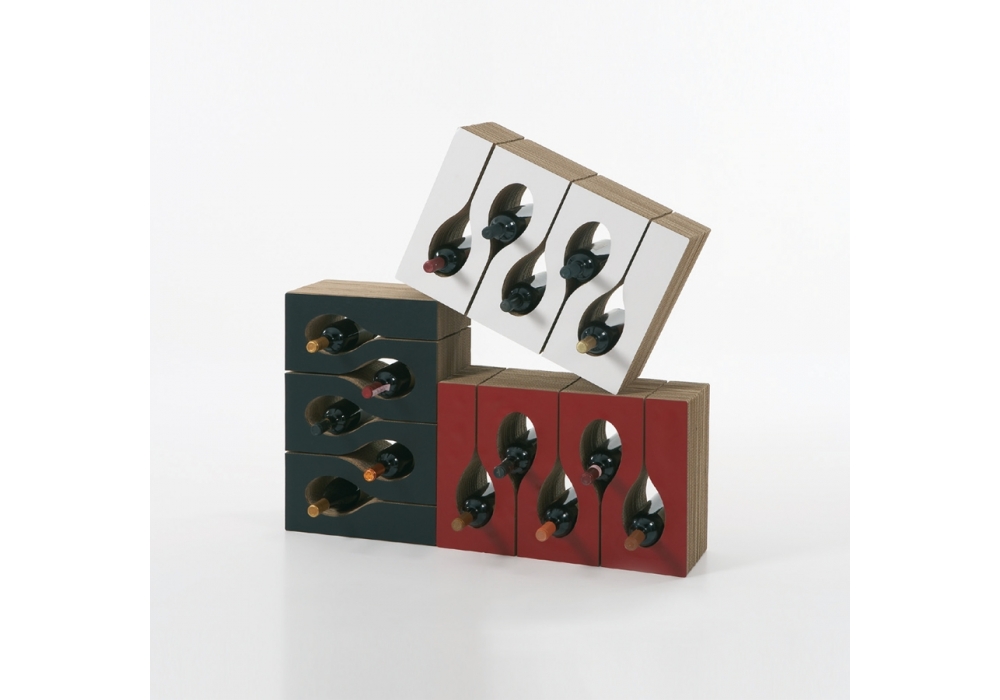 Brillo firmato da Kubedesign è un portabottiglie/riviste in cartone tridimensionale. Disponibile con finitura in materiale rigido antiurto nei colori bianco, nero o rosso.