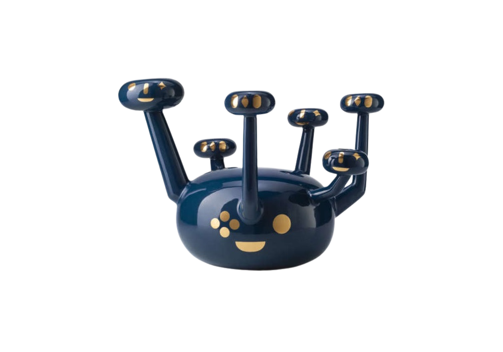 Atomo Baile firmato da Jaime Hayon per Bosa è un candelabro in ceramica con un design assolutamente affascinante e un aspetto quasi alieno. Atomo dispone di sette porta candela che si irradiano da un centro simile ad un orbita, con finitura blu e decorazioni oro.