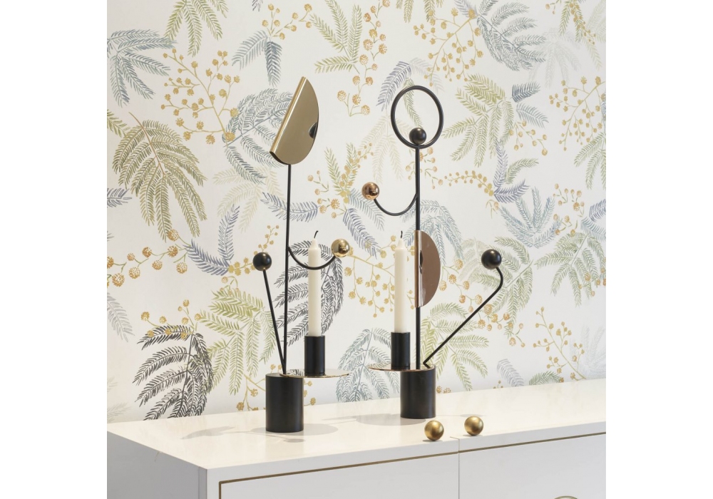 Les Immobiles N°2 firmato da Thomas Dariel per Maison Dada è un portacandele con base cilindrica interamente strutturato in metallo verniciato a polveri nero con particolari placati champagne lucido.