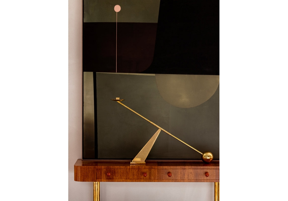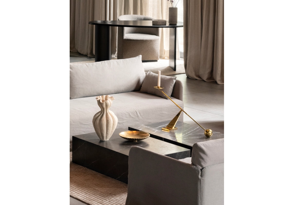 Interconnect firmato da Colin King Studio per Audo Copenhagen è un portacandela disponibile in acciaio verniciato a polvere nero o in ottone lucido.