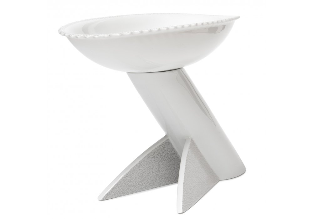 Kariba firmato da Matteo Thun per Memphis Milano è un portafrutta realizzato in porcellana bianca con decori.