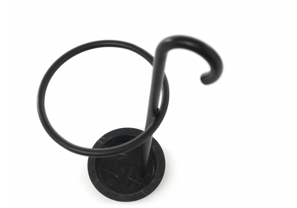 Renè firmato da Marcantonio per Mogg è un portaombrelli in legno di faggio curvato, con base in marmo nero Marquina e bastone nero. L’anello portaombrelli è di colore nero.