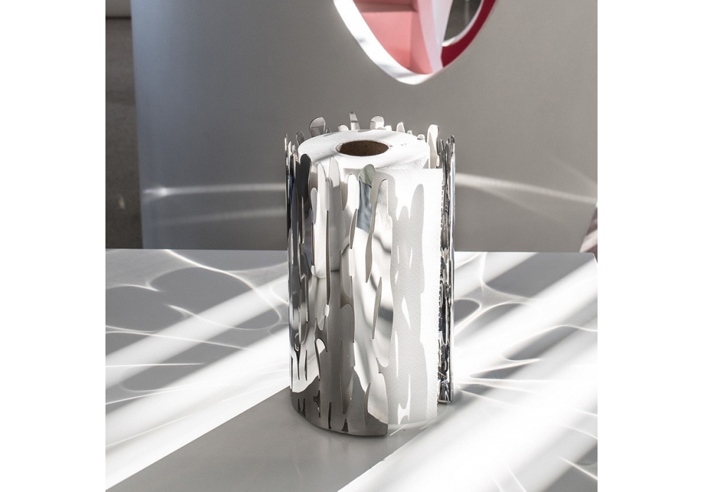 Barkroll firmato da Michael Boucquillon & Donia Maaoui per Alessi è un portorotolo da cucina realizzato in acciaio inox 18/10. Disponibile anche in 3 finiture.