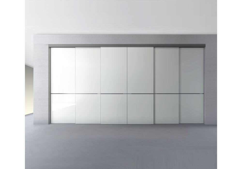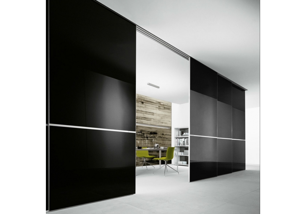 Graphis firmata da Giuseppe Bavuso per Rimadesio è la porta scorrevole in totale libertà progettuale, definita dall’eccezionale varietà cromatica ed estetica del vetro Rimadesio. I pannelli del sistema Graphis, sempre realizzati su misura, sono costituiti da un profilo strutturale d’alluminio di minimo spessore, caratterizzato dal traverso orizzontale con maniglia integrata.