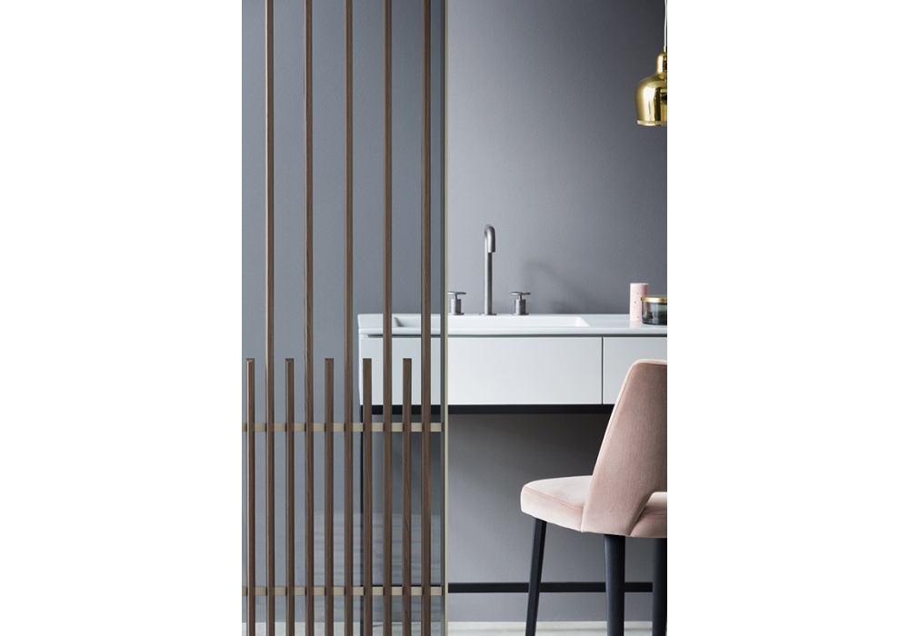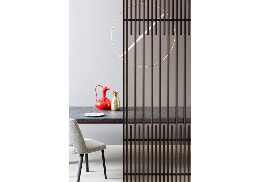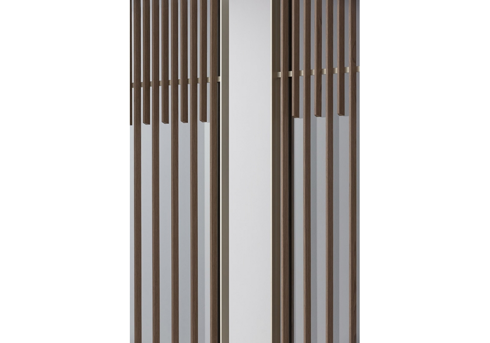 Koan firmata da Kokaistudios per Lualdi è una porta scorrevole in vetro, legno e alluminio.Questa porta scorrevole per interni presenta un’inedita combinazione di listelli verticali che vanno ad alternarsi su lunghezze variabili. Disponibile in differenti finiture.