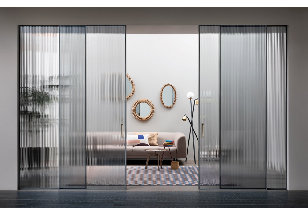 Shoin firmata e prodotta da Lualdi è una porta con un sistema di ante scorrevoli e pannelli fissi in vetro, a uno o due binari, progettato per comporre pareti. Le lastre vivono all’interno di un sottile telaio in alluminio, a filo con il vetro sulla facciata esterna della composizione. Disponibile in differenti finiture.