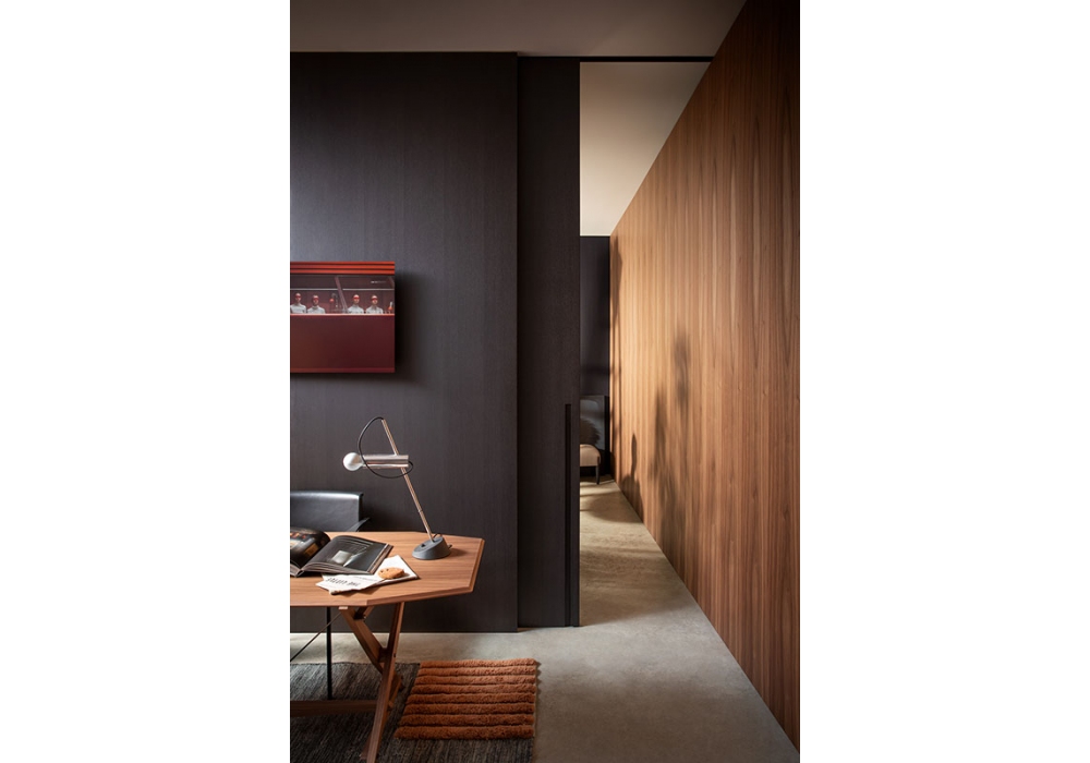 Sliding 50 firmata e prodotta da Lualdi è una porta con sistema di ante scorrevoli in legno, è configurabile in molteplici versioni in essenza o laccato, per un sistema di pareti divisorie indoor che si integra con estrema flessibilità nei contesti architettonici più eterogenei. Disponibile in differenti finiture.