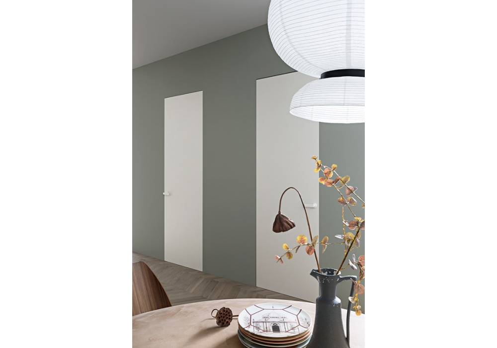Rasomuro 55 firmata e prodotta da Lualdi è una porta a battente a filo del muro in legno e alluminio, con telaio in alluminio, è una porta di design in grado di integrarsi alla parete con mimetismo perfetto. Disponibile in differenti finiture.