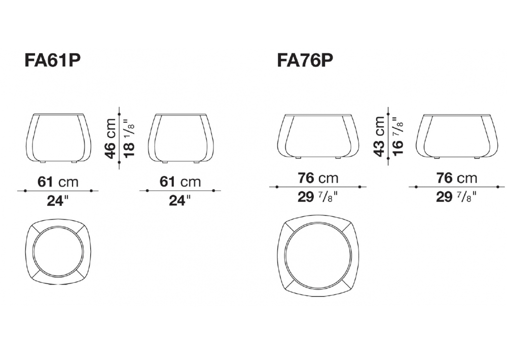 | Dimensioni | 61 x 61 x H 46 cm; 76 x 76 x H 43 cm. |