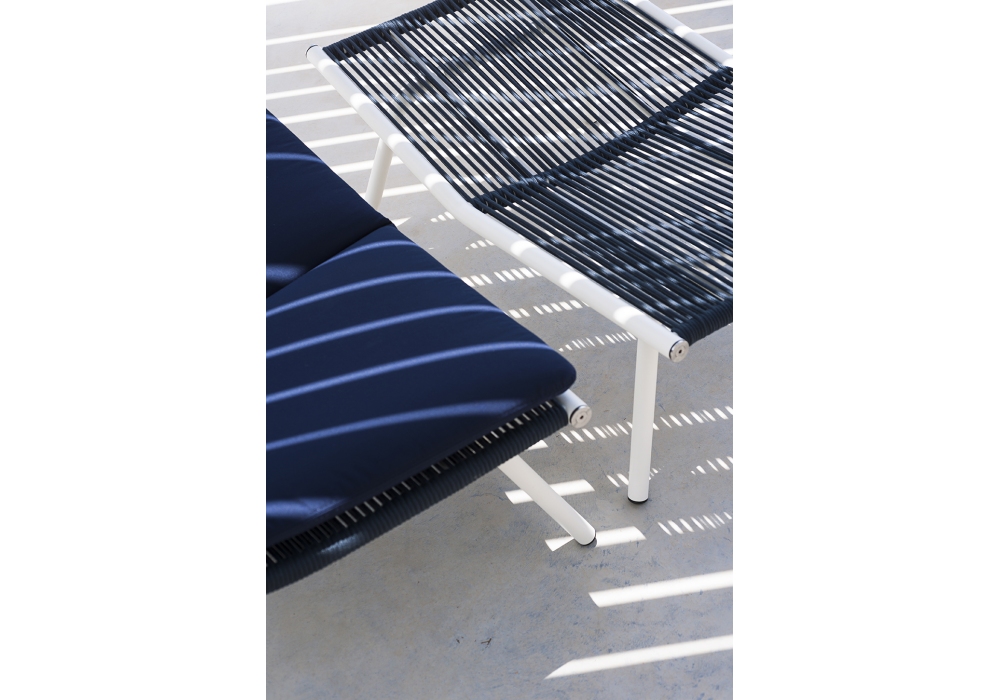 Laze firmato da Gordon Guillaumier per Roda è un poggiapiedi da esterno con struttura in acciaio inox verniciato a polvere e piano in corde di poliestere o acrilico.