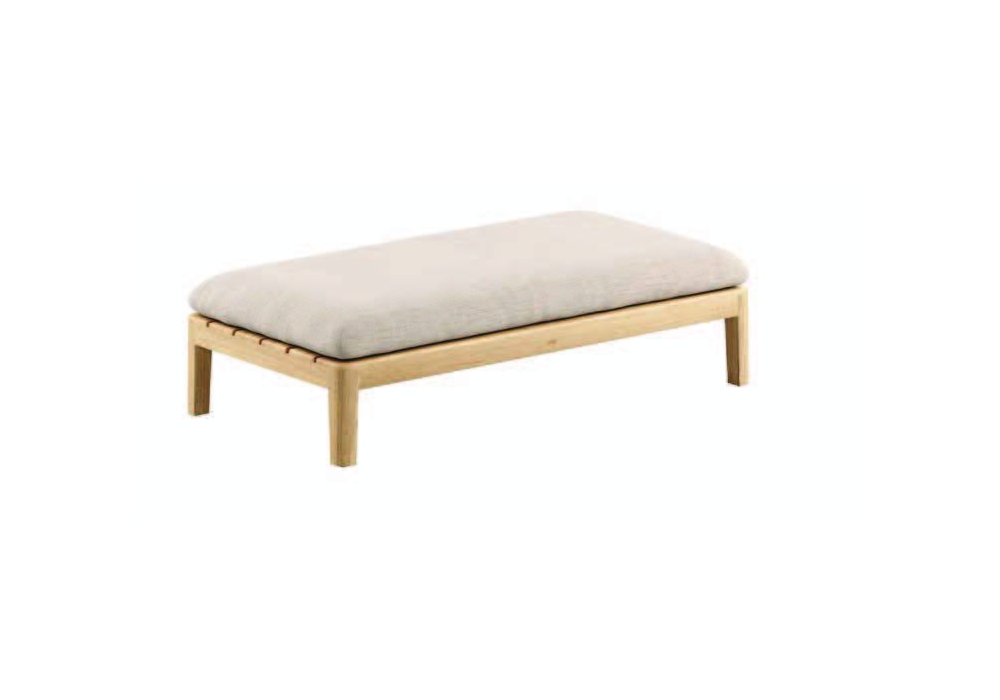 Calypso Lounge firmato da Kris Van Puyvelde per Royal Botania è un poggiapiedi da esterno con struttura in teak e rivestimento in differenti finiture. Disponibile in due dimensioni.