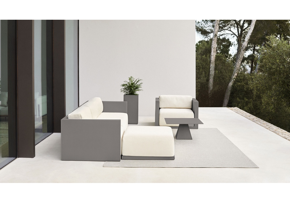 Gatsby firmato da Ramón Esteve per Vondom è un pouf realizzato con base in resina di polietilene mediante stampaggio rotazionale e seduta imbottita con rivestimento in tessuto. Riciclabile al 100%. Articolo adatto per uso interno ed esterno. Disponibile in diverse finiture.