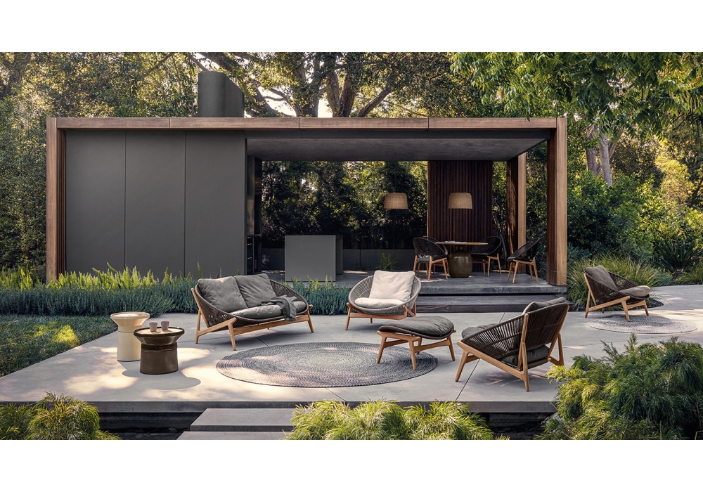 Haven firmato da Sebastian Herkner per Gloster è un poggiapiedi da esterno con struttura in teak. Rivestimento disponibile in differenti finiture.