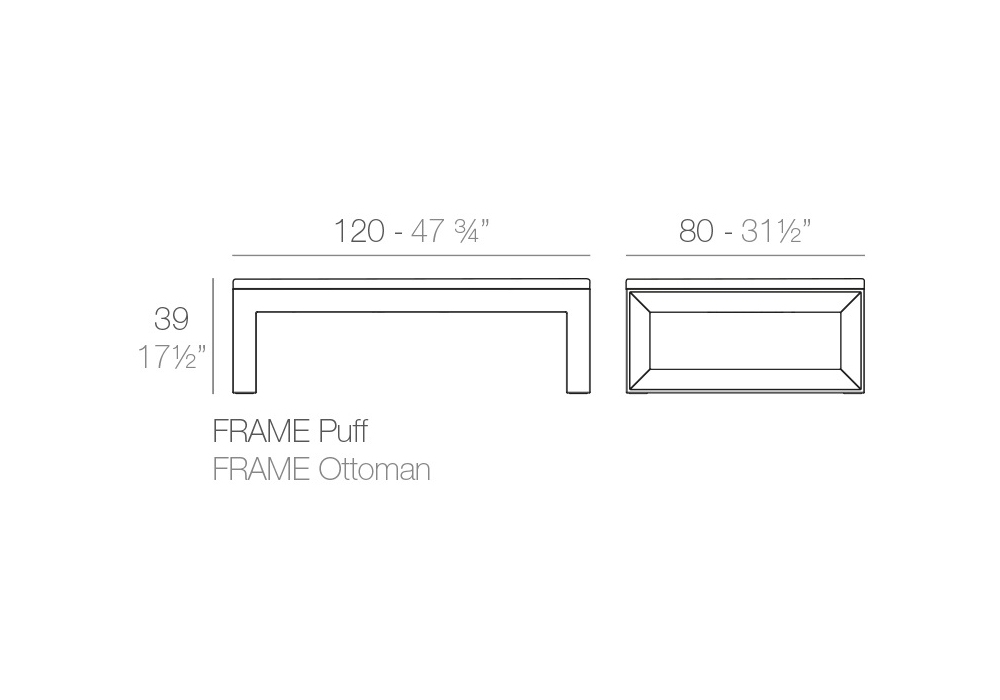 Frame firmato da Ramón Esteve per Vondom è un pouf realizzato in resina di polietilene mediante stampaggio rotazionale e cuscino seduta in tessuto. Riciclabile al 100%. Articolo adatto per uso interno ed esterno. Disponibile in diverse finiture.