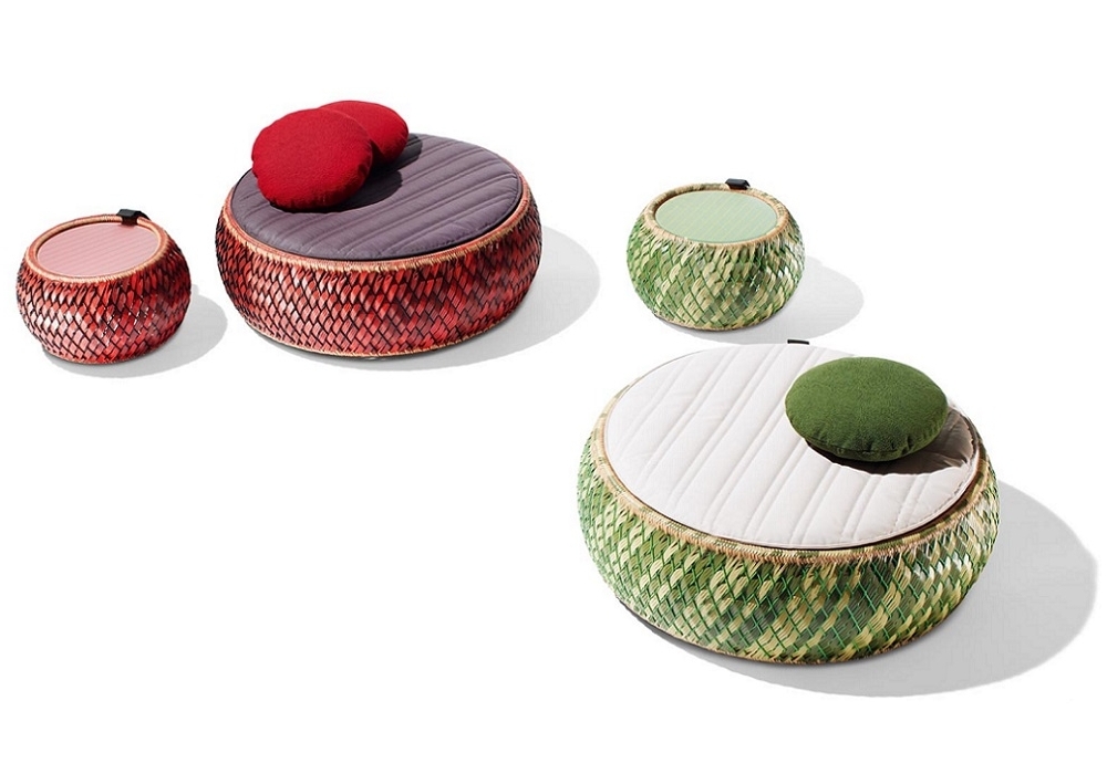 Progettata da Stephen Burks, DALA evoca la maniera casuale di disporre le sedute nei paesi emergenti e le capacita' artigianali locali. Perfetta simbiosi tra texture e struttura, la collezione DALA comprende una sedia lounge, un pouf, uno sgabello/tavolino, dalla struttura tondeggiante in tubolare di alluminio estruso.