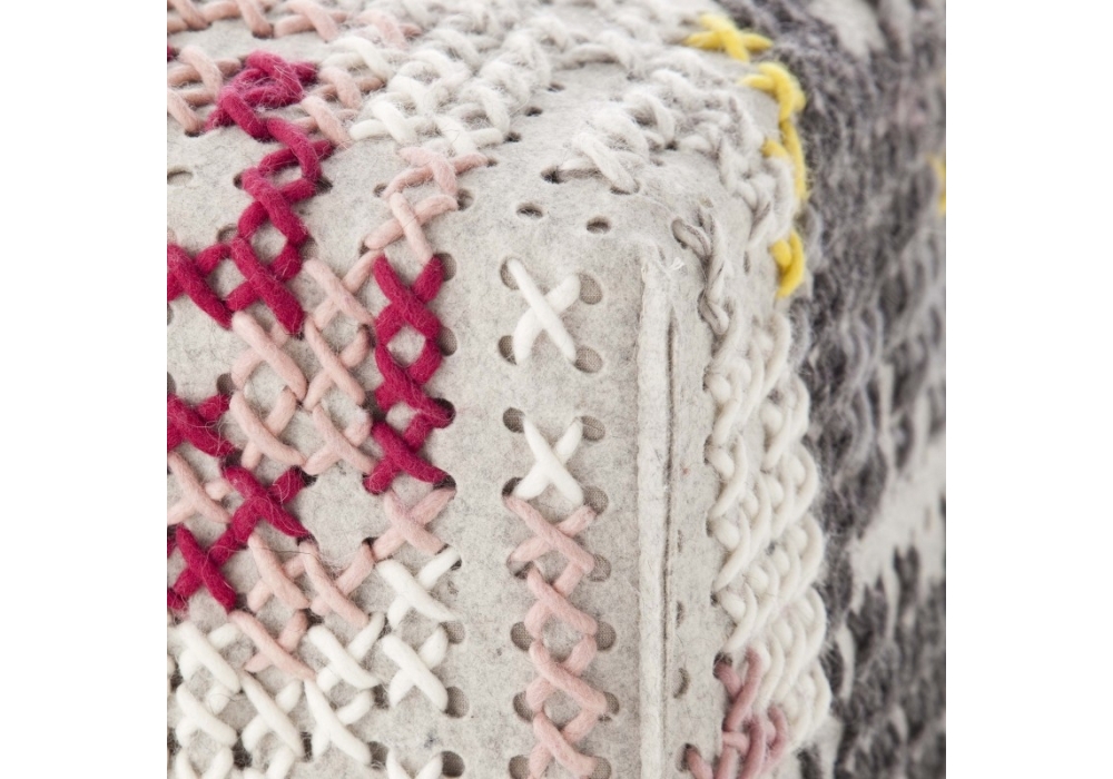 Canevas Flowers Square firmato da Charlotte Lancelot per Gan è un pouf con struttura in legno, imbottitura in gommapiuma e rivestimento 100% lana. Disponibile in due finiture.