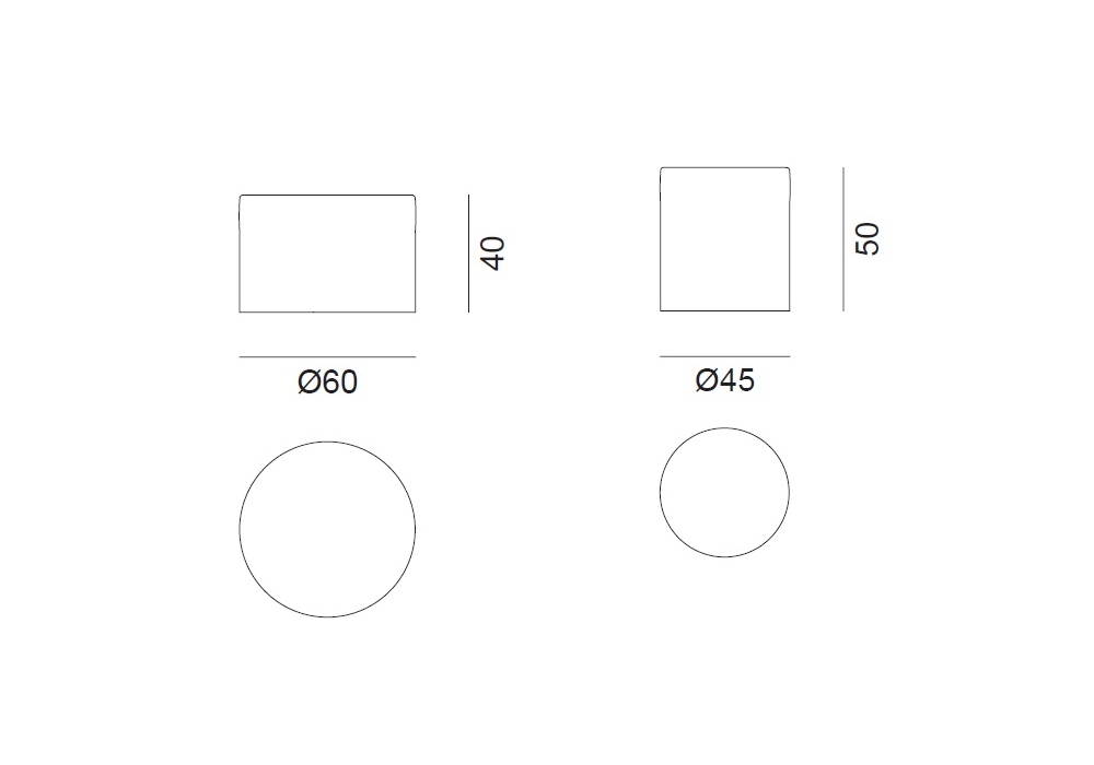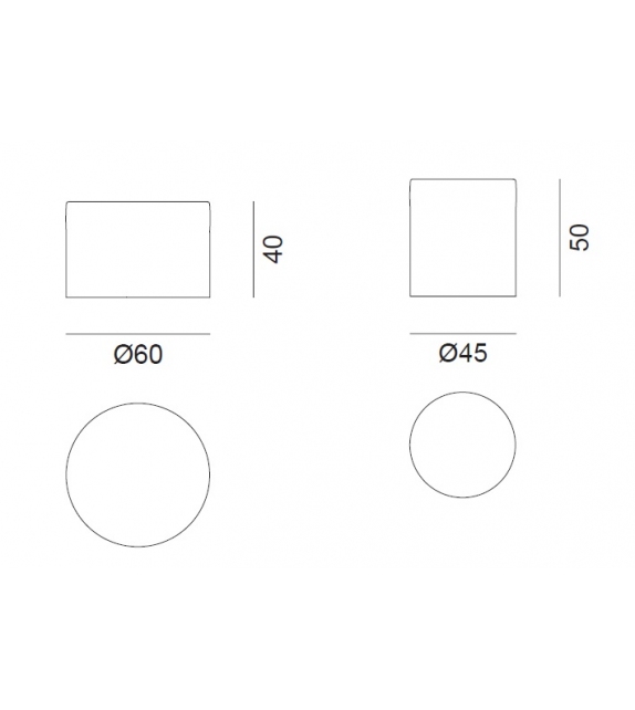 | Dimensioni | Brick 19_ Ø 45 x H 50 cm; Brick 18_ Ø 60 x H 40 cm. |